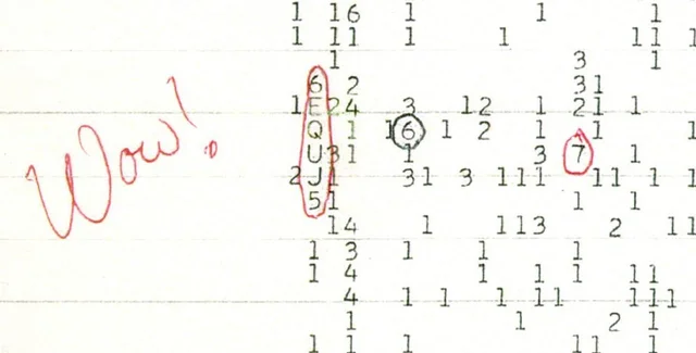 Сигнал был зафиксирован 15 августа 1977 года обсерваторией «Большое ухо» в Огайо. Астроном из проекта SETI по поиску внеземной жизни Джерри Эман был настолько удивлен мощностью сигнала, что обвел эти данные красной ручкой и подписал их пометкой Wow!.