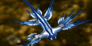Сверху серебристо-серые "брюшки" этих плавающих на поверхности морских слизней (Glaucous atlanticus) позволяют им маскироваться под цвет воды. Но снизу они сверкают великолепными полосами ярко-синего цвета.