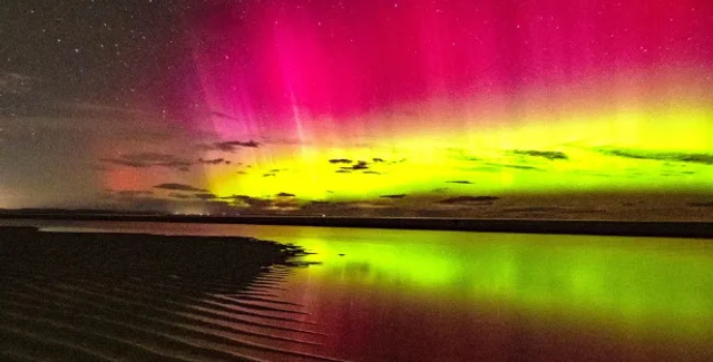 Сильная геомагнитная буря, вызванная корональным выбросом массы из Солнца, подарила жителям нескольких континентов незабываемое световое шоу. В Великобритании аврора осветила небо второй раз подряд, ее видели даже в южных регионах страны. Одновременно вспышки зафиксировали в Скандинавии и Северной Америке.
