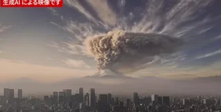 Видеоролик был создан с помощью ИИ Токийским столичным правительством. В нем жителям Токио попытались наглядно показать скорость, с которой вулканический пепел может долететь от извергающегося вулкана до Токио. Видео демонстрирует апокалиптические картины дорог, зданий, железных путей и других объектов инфраструктуры, покрытых вулканическим пеплом.