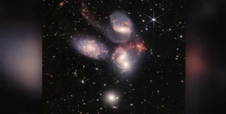 Квинтет JWST похож на Квинтет Стефана в локальной Вселенной. Это система, в которой происходит слияние четырех галактик. Квинтетом эта система была названа из-за того, что на изображениях видна еще одна галактика, но она не принимает участие в слиянии. Астрономы говорят, что Квинтет JWST и Квинтет Стефана содержат мосты из вещества, соединяющие галактики.