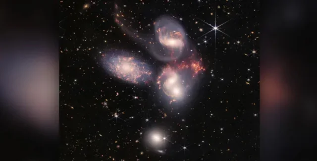 Наблюдение за пятью галактиками показало, что это действительно взаимодействующая система. То есть все 5 галактик притягиваются друг к другу гравитацией и начинается обмен межзвездным газом. Астрономы говорят, что в конечном итоге Квинтет JWST должен был превратится в одну огромную галактику. Расчеты учены показывают, что должно было произойти через 1 – 1,5 млрд лет после Большого взрыва.