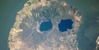 Интригующее фото, сделанное астронавтом в 2014 году с Международной космической станции (МКС), демонстрирует два вулканических острова, подобные черным глазницам, смотрящим в космос с полуострова Чилтепе в районе озера Манагуа в Никарагуа. Эти "глаза" и "череп", как считают ученые, образовались на планете тысячи лет назад, пишет Live Science.