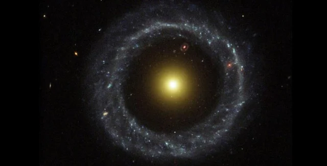 Так называется необычная галактика, которая находится на расстоянии примерно 600 млн световых лет от нас, и имеет странную структуру. Галактика состоит из идеально симметричного кольца молодых звезд и областей звездообразования диаметром около 120 000 световых лет. Внутри кольца находится желтая сфера, состоящая из более старых звезд диаметром около 17 000 световых лет. Сферу и кольцо разделяет примерно 58 000 световых лет практически полностью пустого пространства.