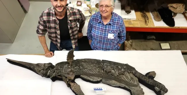 Впервые почти полный скелет ископаемой рептилии был обнаружен на Юрском побережье на юге Великобритании. Это 154-километровый участок побережья, где палеонтологи обнаружили ранее много окаменелостей динозавров из юрского периода (201 – 145 млн лет назад). После этого скелет был передан Королевскому музею Онтарио в Канаде. Хотя окаменелость идентифицировали как ихтиозавра, ее детальное изучение началось лишь недавно. По словам ученых, древняя морская рептилия жила в период между 193 и 184 миллиона лет назад, в так называемом плинсбахском веке в начале юрского периода.