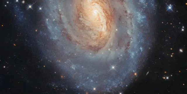 Новая фотография спиральной галактики с перемычкой NGC 6000, которая находится на расстоянии 102 миллиона световых лет от нас, в центре наполнена желтым цветом, а синий цвет преобладает на ее окраинах. Но именно то, что эти цвета говорят о возрасте, массе и температуре звезд в галактике, делает это изображение действительно потрясающим.