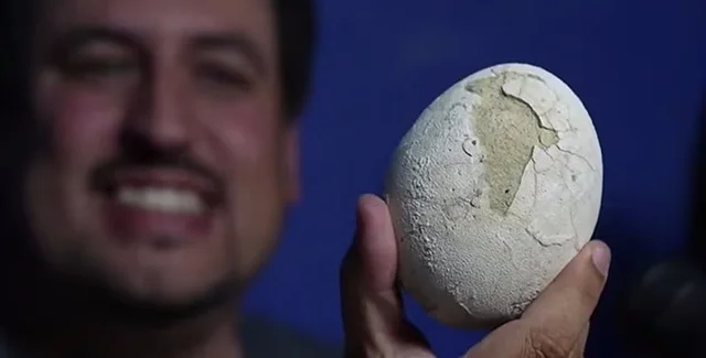 В ходе экспедиции ученые также обнаружили зубы млекопитающих и позвонки змей, что указывает на то, что это место, вероятно, когда-то было местом гнездования. Недалеко от окаменелости древнего яйца динозавра также были обнаружены другие разбитые яйца, фрагменты которых поднесены к камере.