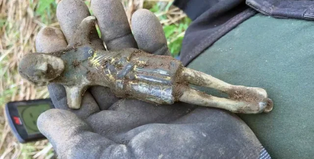 Предмет нашел Ким Эрик Филлинг Дибвик, который вместе с Уорреном Шмидтом исследовал поле, когда металлоискатель подавал чрезвычайно сильный сигнал. Под тонким слоем почвы они обнаружили небольшую бронзовую фигурку Христа, на которой еще были следы оригинальной позолоты, пишет Arkeonews.