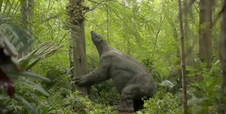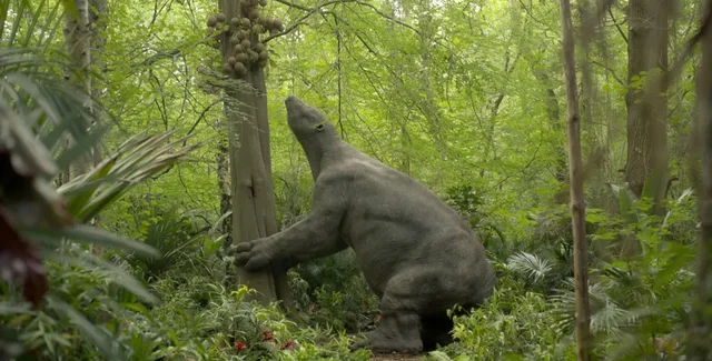 В одном из сюжетов нового сериала ученые показали древнего гигантского ленивца, который питается плодом дерева, известным как пушечное ядро. Любопытно, что плоды этого дерева существуют по сей день и, как отмечается, пахнет скунсом — голубовато-белая мякоть съедобна и употребляется в пищу до сих пор там, где он растет в Центральной и Южной Америке.
