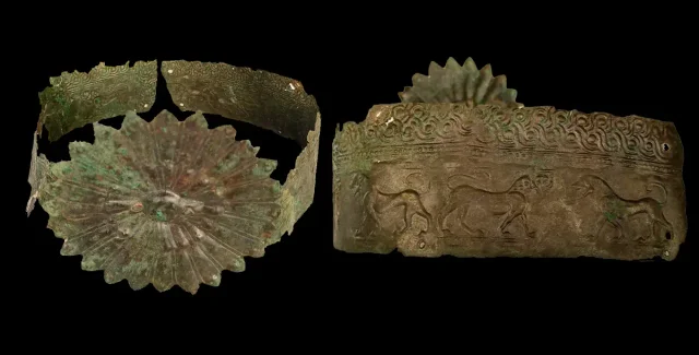 Рядом археологи нашли еще одно захоронение молодой женщины, также с бронзовой диадемой, украшенной розетками и украшениями, очень похожими на те, что принадлежали знатной женщине.