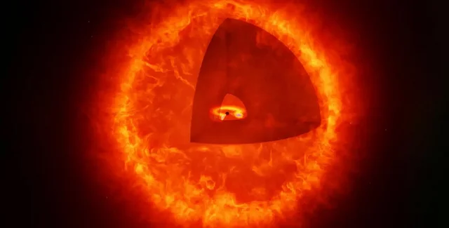 Этот объект получает энергию не от термоядерного синтеза, а от сверхмассивной черной дыры, которая окутана толстым слоем водорода, который окрашивает свет, исходящий от аккреционного диска черной дыры в красный цвет.