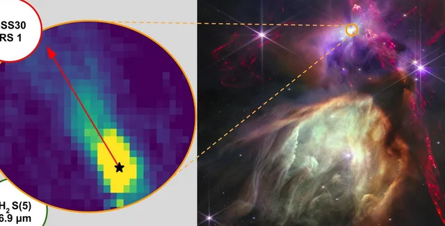 С помощью космического телескопа Уэбб астрономы изучили пять протозвезд в молекулярном облаке Змееносца, расположенном в 450 световых годах от нас. Кроме новорожденных звезд там находятся и молодые массивные звезд, выпускающие мощное ультрафиолетовое излучение.