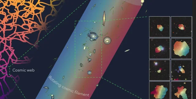 Открытие, показывающее, что галактики вращаются вокруг своей оси в том же направлении, что и космические нити, удивительно, учитывая представления астрономов о том, как изначально формируются галактики.