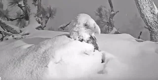 На видео пара птиц, названная Джеки и Шэдоу, защищает своих птенцов от суровой погоды – сильного снегопада и ветра примерно 240 км в час.