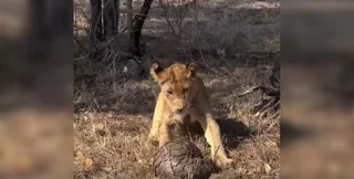 На видео из дикой природы попал курьезный случай, когда лев попробовал напасть на небольшого панголина.