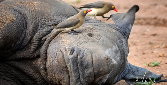 Буйволовые скворцы являются частыми спутниками носорогов. Оказывается, несмотря на то, что эти птицы причиняют вред носорогам, они также дают много преимуществ этих животным.