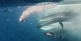 Изначально мелкая рыба двигалась обычно, однако затем активность усилилась, видимость упала, а вода наполнилась пеной. После появился морской гигант. Когда кит исчез, скопление мелкой рыбы значительно уменьшилось, так как кит поглотил часть стаи.