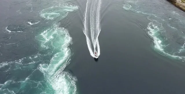Когда течение меняется, наступает период, когда пролив становится судоходным. В это время течение почти спокойное. В этот момент тяжело представить, что в проливе “обитают” самые сильные водовороты в мире.
