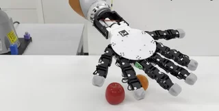 В видеоролике показано, как роботизированная рука, все еще прикрепленная к манипулятору, поднимает бутылку с горчицей, а затем переворачивается и хватает банку чипсов противоположной стороной ладони. В другом примере рука легко поднимает помидор двумя пальцами, удерживая второй предмет между пальцами с противоположной стороны. Затем рука отсоединяется от манипулятора и быстро движется к банану, переворачивает его вверх и закрепляет на тыльной стороне ладони одним пальцем.
