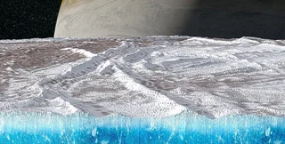 Когда аппарат "Юнона" приблизился к ледяной поверхности Европы на расстояние около 360 километров, микроволновой радиометр MWR собрал данные о ледяной оболочке и ее подповерхностной структуре.