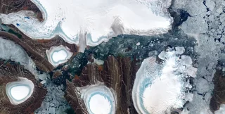 Экипаж изменил курс и направился к материку. Благодаря этому открытию сегодня нам известно, что архипелаг Северная Земля состоит из пяти основных островов. По словам исследователей NASA, архипелаг Северная Земля в российской Высокой Арктике занимает площадь 37 000 квадратных километров и здесь не растут деревья. Архипелаг представляет собой арктическую тундру, а потому круглый год здесь преобладают холодные и сухие условия. Средняя дневная температура в августе, когда был получен этот снимок, составляет 0 градусов по Цельсию — такие условия весьма благоприятны для круглогодичного льда, покрывающего около половины архипелага..