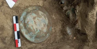 Второй примечательной находкой был умбо, центральный металлический выступ на церемониальном парадном щите. Такие предметы редко встречаются в могилах. Его наличие свидетельствует о том, что погребенный там человек мог иметь военные заслуги или принадлежать к привилегированной социальной группе.