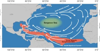 Саргассово море занимает примерно 5,2 миллиона квадратных километров в Северной Атлантике. Вместо береговых линий, которые обычно определяют границы морей, границы Саргассова моря образуют мощные океанские течения.