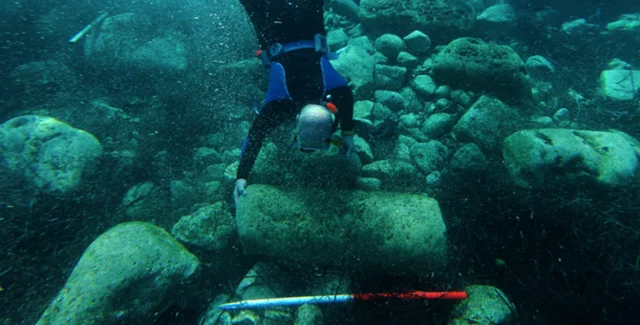 Еще одно подводное исследование было проведено в нескольких километрах к востоку от порта. Там, чуть ниже поверхности воды, находится скальная формация. Возле этого препятствия археологи зафиксировали длинную полосу артефактов, лежавших на глубине нескольких метров под водой. Разбросанные фрагменты амфор и другие материалы указывали на неоднократные кораблекрушения.