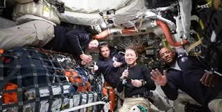 Члены экипажа также заявили, что впервые вместе поели в космосе, и описали свой обед как "комичный".
