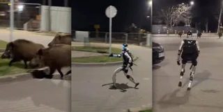 На видео видно, как человекоподобный робот Unitree G1 с искусственным интеллектом, созданный китайской компанией Unitree Robotics, преследует небольшую стаю диких кабанов на пустой автомобильной парковке в Варшаве. На видео запечатлен робот, который получил имя Эдвард Варчоцкий. "Я загоняю диких кабанов в лес", — гласит комментарий к видео. И действительно дикие кабаны кажется убегают именно от робота. При этом в финале видеоролика видно, как робот поднимает кулак вверх, возможно, от досады (если он может иметь такое чувство), когда дикие кабаны убежали.