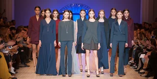 Владимир Подолян обратился к литературной классике. На новую коллекцию его вдохновили романы Льва Толстого "Анна Каренина" и "Война и мир". Впрочем, бальных платьев с открытыми плечами или откровенной стилизации под военную форму наполеоновской эпохи среди вещей от Podolyan не найти.