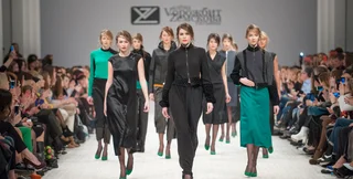 Тоньше всех патриотическую тему обыграл дуэт Татьяны Земсковой и Алены Ворожбит. Вообще-то при создании коллекции от Vorozhbyt&Zemskova осень-зима 2015-2016 они вдохновлялись эстетикой 1970-х и 1980-х. В итоге на подиуме можно было увидеть удлиненные жакеты, расклешенные брюки, трикотажные платья и платья из черной кожи, обильно декорированные застежками-молниями.