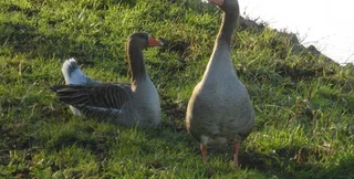 У этой парочки есть хорошая карьерная перспектива, ведь им не больше полутора лет, а продолжительность жизни гусей достигает 18 лет.