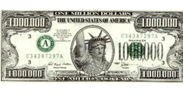 Легальных купюр достоинством в миллион долларов не существует. С 1969 года самая крупная американская банкнота в обращении имеет номинал всего в 100 (сто) долларов.