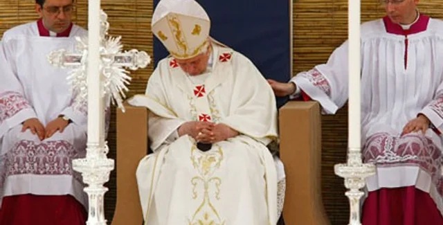 Папа Римский Бенедикт XVI, пребывая на Мальте, заснул во время мессы между двумя епископами