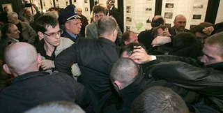 Как сообщает пресс-служба прокуратуры Киева, пострадал на открытии выставки корреспондент телекомпании "Новый канал" Сергей Кутраков. Как было установлено, 8 апреля в "Украинском доме" корреспондент, выполняя редакционное задание, проводил съемку сюжета об открытии фотовыставки "Волынская резня: польские и еврейские жертвы ОУН УПА". Его внимание привлекли люди, выкрикивавшие националистические лозунги, которых охранники начали выводить из зала в коридор служебного выхода.