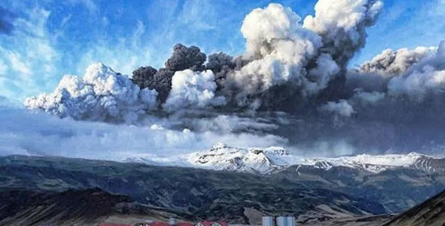 Напомним, вулкан Эйяфьятлайокудль, который находится в 200 км к востоку от Рейкьявика, начал извергаться 14 апреля.