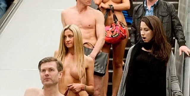 Им было разрешено надеть обувь и прикрыть гениталии сумками или кейсами. При этом они должны были вести себя максимально естественно и не обращать внимание на взгляды попутчиков.