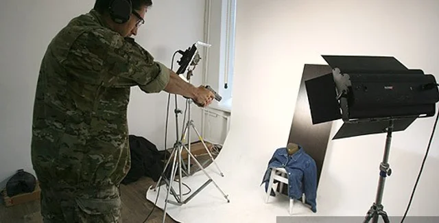 | Джинсобойный снаряд. Миф о том, что джинсовая куртка может защитить от резиновой пули, был расстрелян: патрон мощностью в 200 Дж продырявил коттон и вошел в желатиновый торс на 4,5 см | |