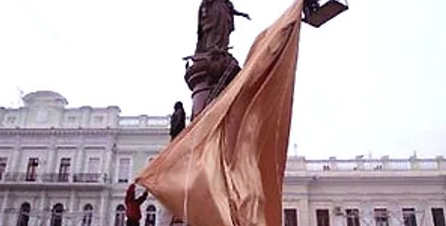 Вечером в субботу в Одессе торжественно открыли памятник основателям Одессы с фигурой российской императрицы Екатерины II в центре композиции. Jткрытие памятника пришлось задержать в связи с возникшей потасовкой между противниками открытия монумента и сотрудниками милиции.