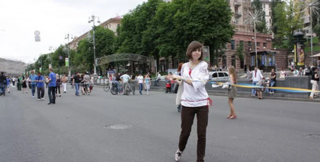 Лента длиной 725 метров протянулась от площади Независимости и практически до Бессарабской площади. Для того, чтобы зафиксировать достижение, на Крещатик пригласили представителей Книги рекордов Украины. После того как лента была развернута, каждый желающий смог получить ее часть.