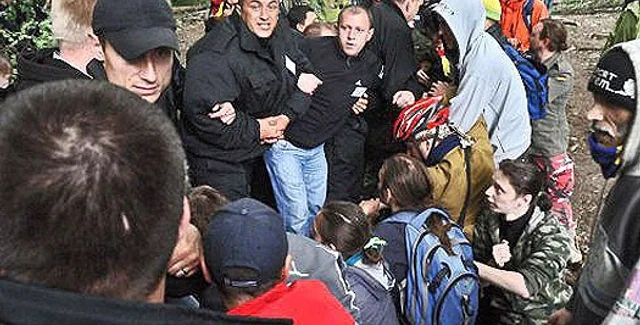 Также сообщается, что правоохранители грубо, с применением физической силы хватают защитников парка и впихивают их в машины. По информации СМИ, полковник милиции, который руководит этим действом, отказался представиться журналистам, "хамил им и угрожал".