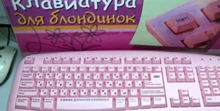 Созданная в России "Клавиатура для блондинок" представляет собой стандартное устройство ввода, выполненное из розового пластика и отличающееся от всех остальных клавиатур необычными надписями на клавишах. Так, на месте Escape красуется емкое "Нет!", пробел обозначен как "самая длинная клавиша", а Control и Alt обозначены как "Ненужная кнопка" и "Ваще не понимаю".