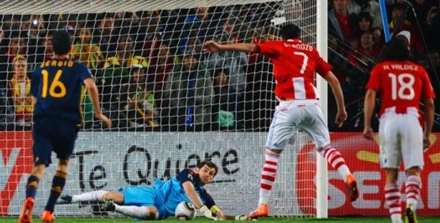 На 59-й минуте парагваец Оскар Кардосо не сумел переиграть испанского вратаря Икера Касильяса, а на 63-й минуте голкипер сборной Парагвая Хусто Вильяр парировал удар Хаби Алонсо. Оба пенальти были назначены при счете 0:0, а в итоге победу одержали испанцы (1:0).