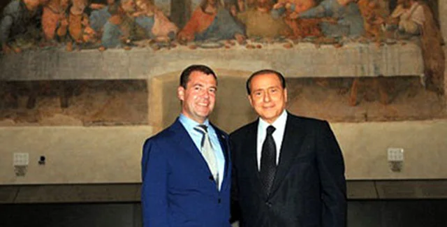 Итальянцы возмущены фотографией российского президента Дмитрия Медведева и премьер-министра Италии Сильвио Берлускони на фоне "Тайной вечери". По словам специалистов, фото на память могло навредить великой фреске из-за вспышки