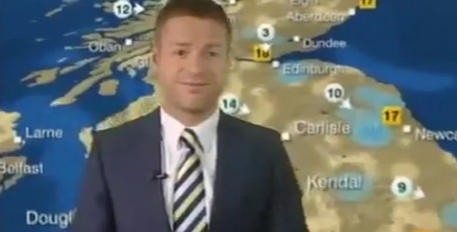 Саймон Маккой, постоянный ведущий утреннего эфира, анонсировал прогноз погоды и решил вежливо пошутить: "Через минуту мы услышим прогноз погоды, и конечно он будет на 100 процентов точный. Вам расскажут все подробности, о которых вы хотели знать".
