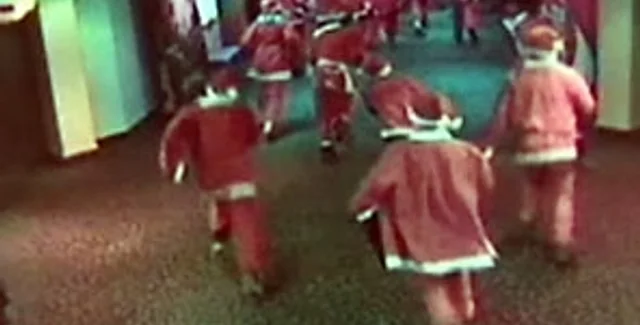 Как сообщают очевидцы, мужчины, одетые в костюмы доброго дедушки, неожиданно ворвались в здание, пронеслись по нему, громя все вокруг, и так же стремительно удалились. Действия Санта-Клаусов были зафиксированы камерами видеонаблюдения.