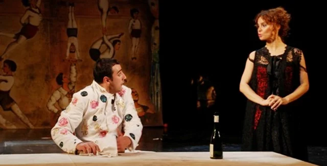 Даже служанка Анна, (Ия Сухиташвили), по собственному признанию, не пользующаяся успехом у мужчин, проявляет себя весьма ярко и театрально - например, лихо седлает велосипед, чтобы отправиться на нем в путешествие по сцене. Вся эта экстравагантная компания (сценография Георгия Алекси-Месхишвили) вместе с хором пожарных еще и поет. Музыку для этого спектакля написал Гия Канчели.