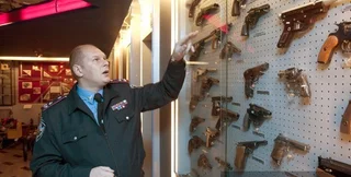 На соседнем стенде – еще более необычные образцы: австрийский пистолет "Колибри" для развлекательной комнатной стрельбы (таких было выпущено всего двести штук), бельгийский револьвер "Велодог" для защиты велосипедиста от уличных собак. Поскольку в Украине нет закона, позволяющего коллекционеру оружия хранить дома боевые стволы, а коллекционеров очень много, музей НИЭКЦ постоянно пополняется раритетными пистолетами. "Даже за хранение вот этих дуэльных пистолей грозит уголовная ответственность, хотя это дорогие коллекционные образцы, которые, по сути, не представляют опасности для общества", – говорит начальник лаборатории. Есть в музее и более мощное оружие – гранатометы, противопехотные и противотанковые мины. "Все, что хранится на военных складах, вполне может быть украдено", – отмечает Игорь Игнатьев.