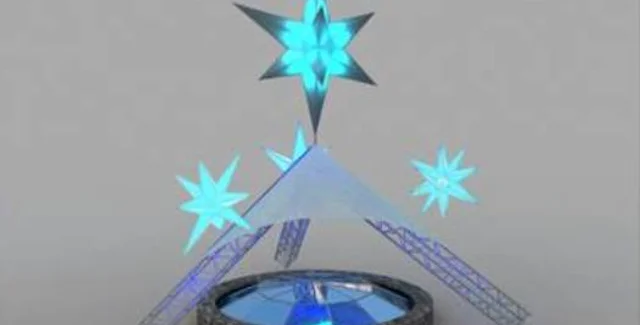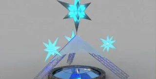 "Звезды будущего" - это современный взгляд на традиционные символы Рождества. Художник изобразил звезды ярко и в грандиозном масштабе, ведь они являются символом надежды, рождения новой жизни и исполнения желаний. Чтобы воплотить замысел художника, конструкторы использовали высокотехнологичные материалы: алюминиевый каркас служит основой для объединения пластмассового полимера со светодиодными трубками. При этом звезды светятся разноцветными огнями.